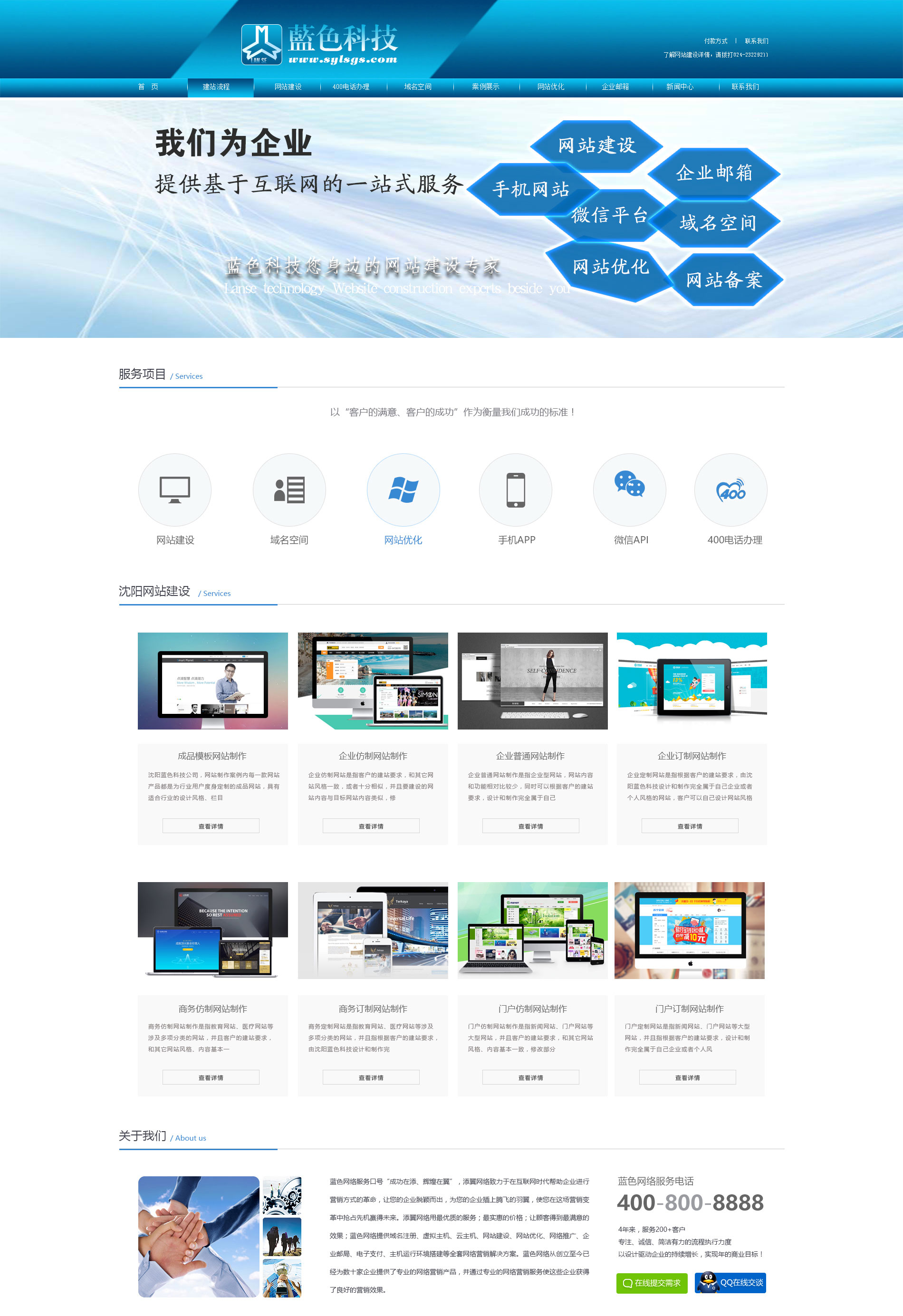 沈陽藍色科技公司專業(yè)從事互聯(lián)網(wǎng)相關服務,服務包括網(wǎng)站制作、網(wǎng)站優(yōu)化(seo)、企業(yè)400電話、微信平臺開發(fā)、域名服務器、企業(yè)OA系統(tǒng)開發(fā)、網(wǎng)頁設計、手機網(wǎng)站建設、手機APP開發(fā)等相關網(wǎng)絡服務。藍色科技以“專業(yè)定制,源碼開發(fā)” 的開發(fā)理念領先同行業(yè),公司聚集IT界的精英,由資深的網(wǎng)站設計師、軟件開發(fā)工程師及專業(yè)售后服務團隊、技術服務團隊等組成。幾年來,藍色科技堅持“誠信為本,用心服務”的經(jīng)營理念,用心對待每一位客戶,以“保證服務品質(zhì),滿足客戶需求”為服務理念,并逐步提供高質(zhì)量的網(wǎng)絡增值服務,為眾多企業(yè)實現(xiàn)網(wǎng)絡營銷夢想做出積極的努力。